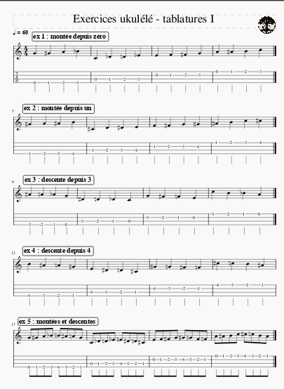 Comme pour chaque séance, 5 min d’exercices picking ( exercice 5 sur le document « tablatures » ) , on joue les 5 exercices, et, cette fois-ci, on va alterner le pource et l’index pour gratter à la main droite !